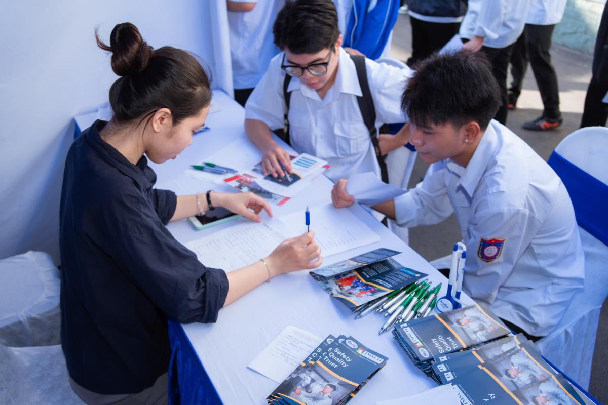 Diễn ra sôi nổi tại sảnh nhà A8, phiên Hội chợ việc làm đã thu hút hàng trăm sinh viên đến tham quan, tìm hiểu và thử sức phỏng vấn trực tiếp với các doanh nghiệp.