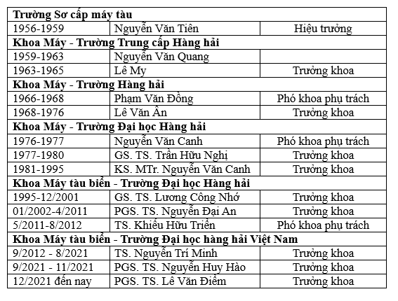 - Ngày 22/5/2015 ngành Máy tàu thủy được tách từ Khoa Cơ khí để chuyển về lại Khoa Máy tàu biển.