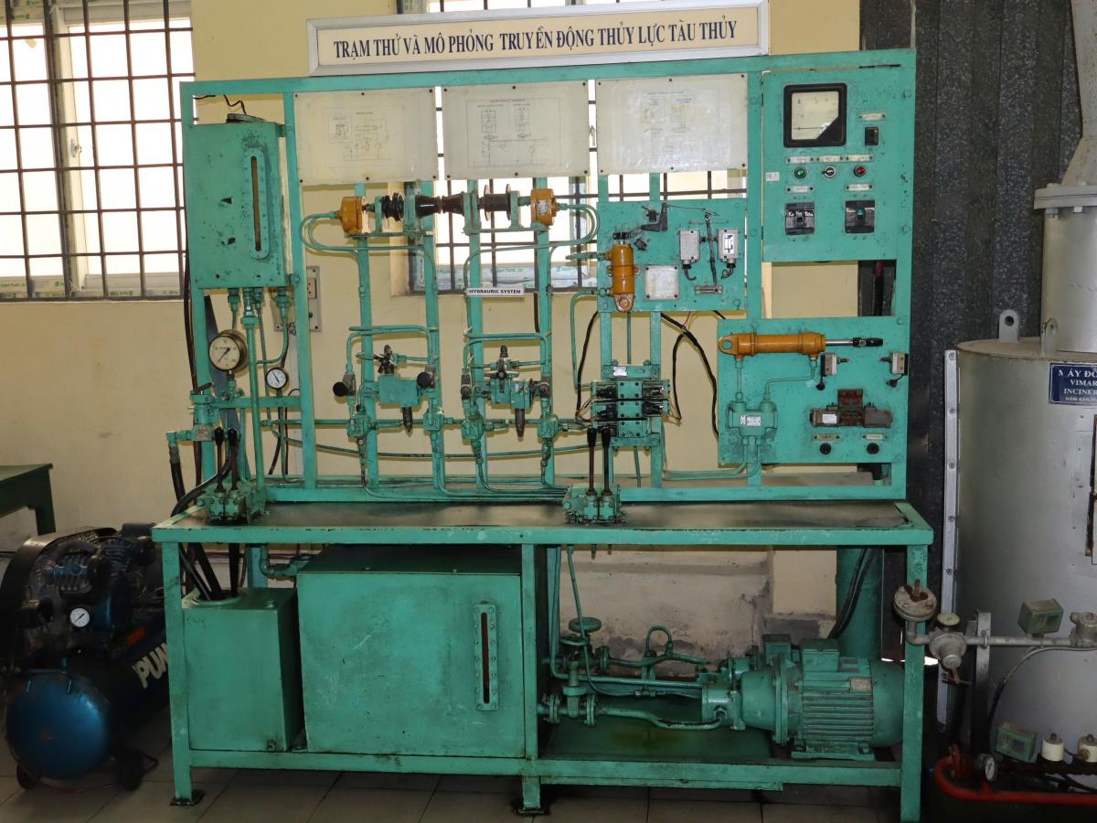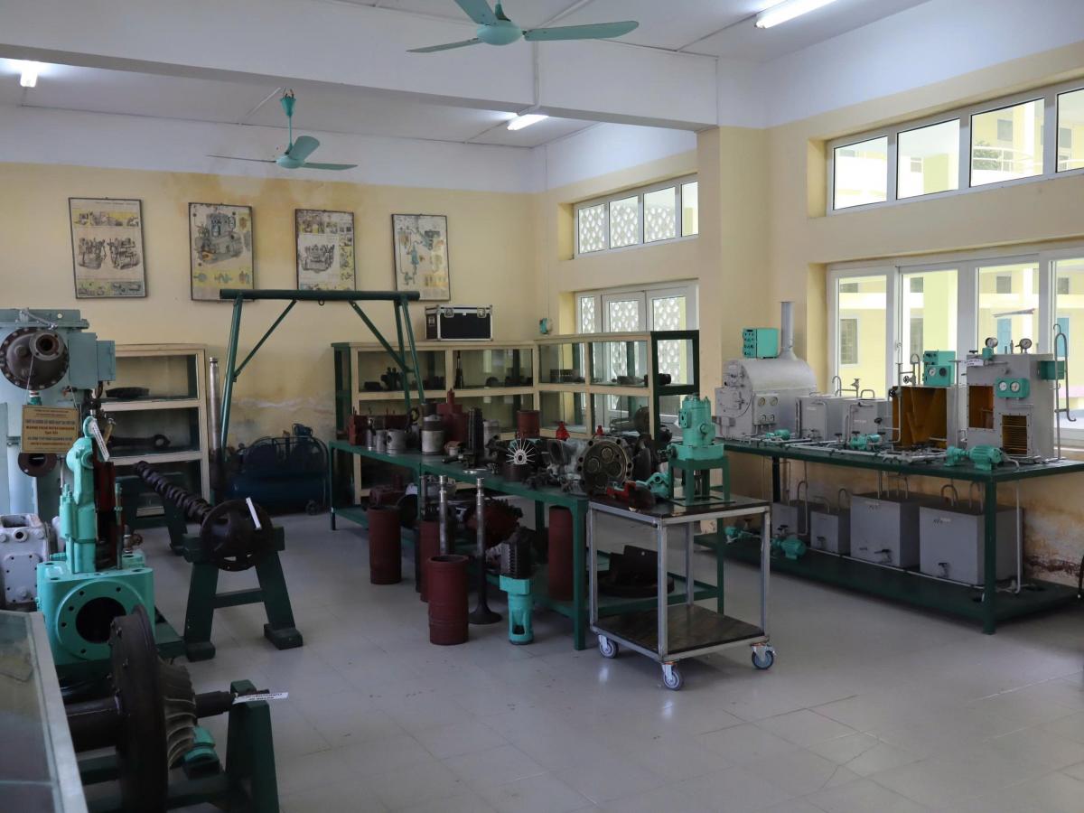 - Phòng thực hành sửa chữa giúp sinh viên làm quen với công việc sửa chữa, tháo, lắp, bảo dưỡng động cơ diesel và các thiết bị buồng máy tàu thủy: